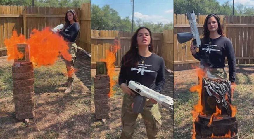 ABD’de Cumhuriyetçi Parti Temsilciler Meclisi adayı Valentina Gomez, X sosyal medya hesabından yaptığı şok paylaşım ile tüm Müslümanları hedef aldı. Gomez, paylaştığı videoda elindeki silahla Kur’an-ı Kerim’i yaktı.