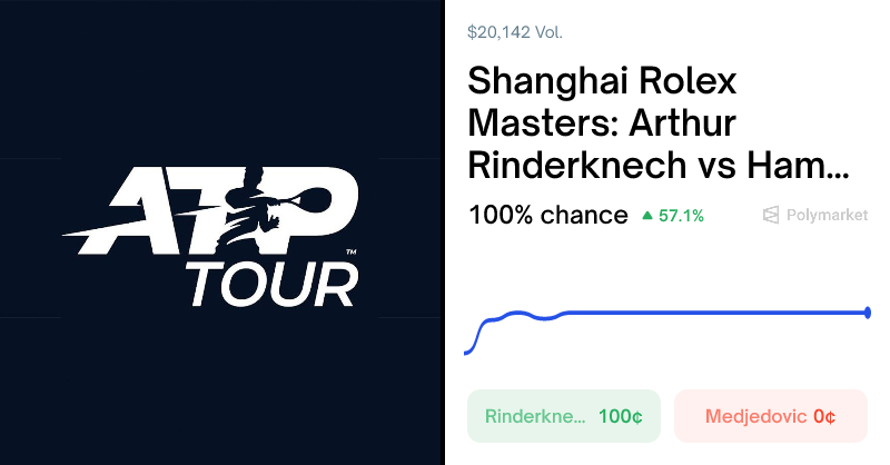 This is a polymarket on the tennis match between Arthur Rinderknech and Hamad Medjedovic in the Shanghai Rolex Masters, scheduled for September 30 at 10:00PM ET.