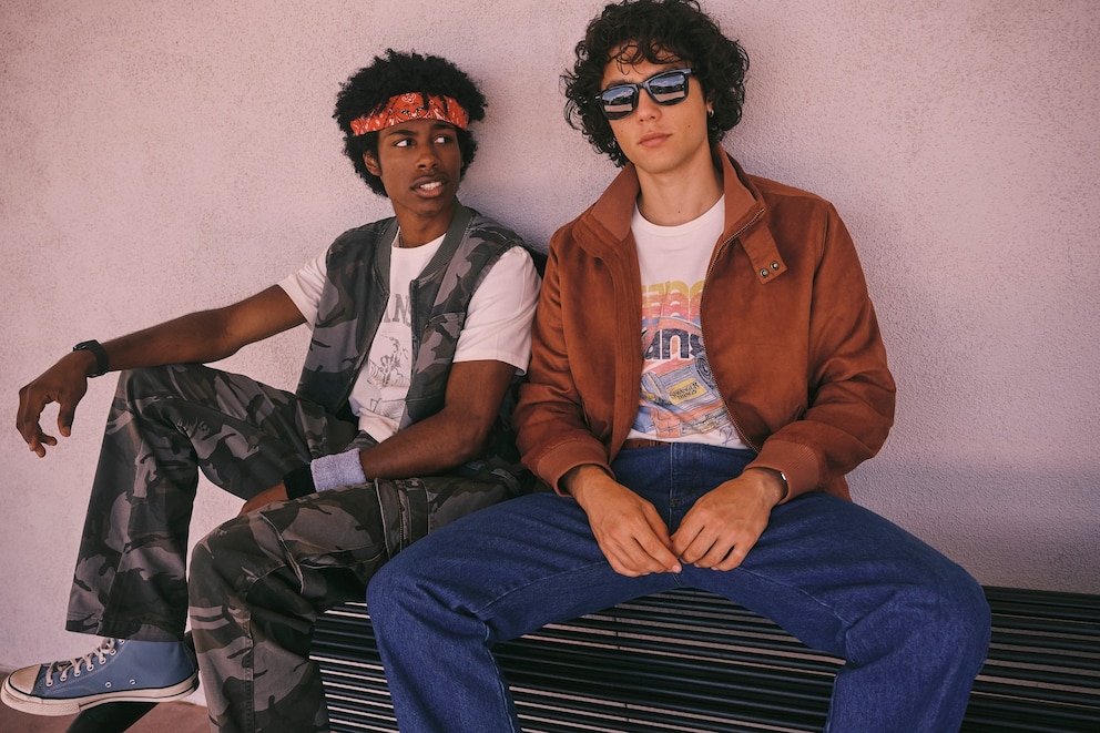 The 19-piece collection offers two distinct experiences for shoppers: One vibe is for true fans who want branded merch by way of trendy trucker hats and graphic tees with the show’s name and logos displayed prominently, while the other is a true return to the ’80s via era-accurate ringer tees, a color-blocked denim bomber jacket, bubble gum pink jeans and more.